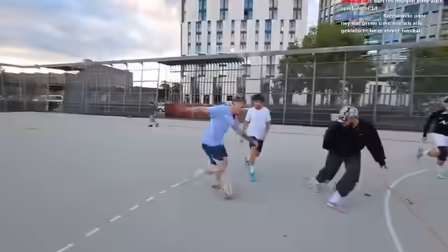 00:10:01Die beiden treffen auf lokale Spieler und integrieren sie spontan ins Spiel. Eine Herausforderung wird im 1-1-Format ausgetragen, bei dem Steven deutlich dominanter ist. Danach organisieren sie eine Latten-Schießen-Challenge, bei der kein Teilnehmer aus dem Chat trifft. Abschließend wird ein Team-Spiel 2 gegen 4 auf einem Futsal-Platz ausgetragen, bei dem Konygebony im Tor steht und das Team gewinnt.