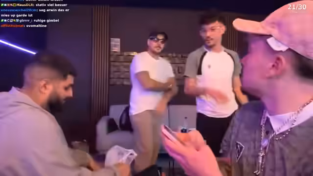 03:21:41Der Stream beginnt mit dem Auftritt von Arvin, der von der Community gefeiert wird. Nach Begrüßungen und gegenseitigen Komplimenten, insbesondere bezüglich seines Aussehens und seiner Kette, beginnt die lockere Unterhaltung. Arvin bestätigt, dass Kony ein wichtiger Mentor für ihn ist und ihm geholfen hat, wo er heute steht. Kony erwähnt, dass Prince Studios den Aufnahmeort zur Verfügung gestellt hat und rät den Zuschauern, sich dort zu Terminen anzumelden. Die beiden Künstler planen, zusammen zu rappen und zeigen sich hochmotiviert für die bevorstehende kreative Session.