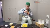 03:29:56Nachdem das Essen angerichtet wurde, startet der Streamer den Mukbang-Chat. Er plant, das Essen zu essen, während die Chat-Zuschauer ihn dabei beobachten können. Dabei treten jedoch technische Schwierigkeiten auf. Sein Gimbal, die Kamera, ist instabil, und sein Handy hat nur noch 4% Akku. Er muss sein Equipment mehrfach umstellen, um eine stabile und gute Bildqualität zu gewährleisten. Währenddessen wird er von einem Anruf unterbrochen und fühlt sich durch das aufkommende Larry-Level, also seinen Stresslevel, stark belastet.