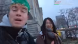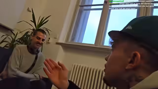 01:14:50Während des Aufenthalts in einem Hörsaal (Vorlesungsraum) kommt es zu einer zufälligen Begegnung mit einer anderen Person. Es entwickelt sich ein spontaner Dialog, in dem der Streamer sich als 'Carlito' ausgibt und eine Rap-Performance anbietet. Die Unterhaltung wechselt zwischen Deutsch und Englisch und behandelt Themen wie Herkunft, Musik und die Anwesenheit von Personen in der Uni. Der Streamer inszeniert dabei eine fiktive Persönlichkeit und interagiert mit den Anwesenden.