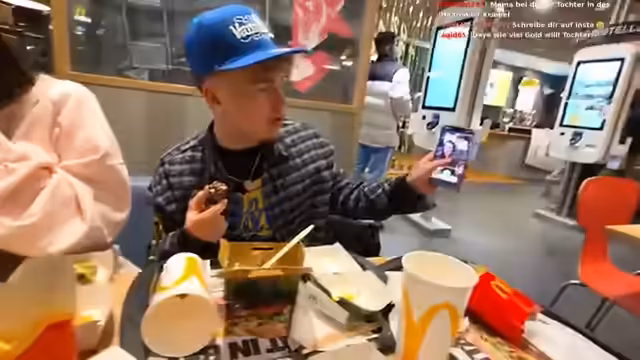 01:19:02Der Stream beginnt mit einer lockeren, alltäglichen Unterhaltung während des Essens. Die Teilnehmer sprechen über Mahlzeiten, vergleichen Burger und Snacksalate von McDonald's und teilen persönliche Anekdoten. Dabei entsteht eine unverkrampfte, familiäre Stimmung, die den gemeinsamen Zeitvertreib und die anwesenden Verwandten in den Fokus stellt. Der Chat wird aktiv in die Unterhaltung einbezogen, wobei Themen wie Essensvorlieben und persönliche Erinnerungen diskutiert werden.