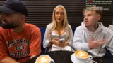 00:26:16Nach einer beschwerlichen Reise mit nassen Kleidern und Wäsche in einem Café erreichen die Streamer ihr Ziel. Dort bestellen sie Getränke und Snacks wie Kaffee und Torten. Die Unterhaltung dreht sich um persönliche Themen, wie die Beziehung zwischen Amalia und Sammy, Zukunftspläne, mögliche Onlyfans-Aktivitäten und die kommerzielle Nutzung von Social Media, wie der Preis für Instagram-Stories.