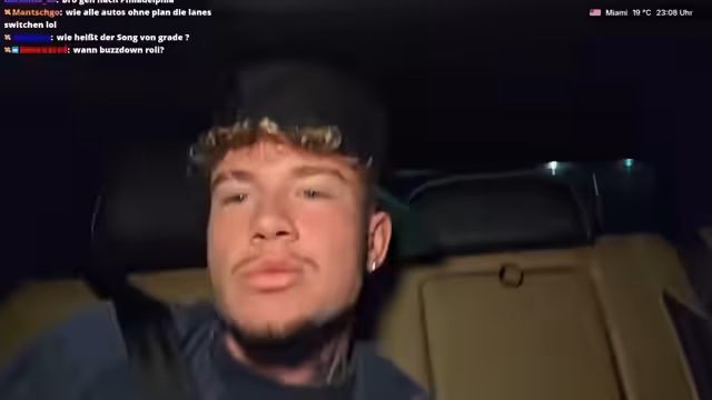 00:03:20Nachdem das Handy auf 9% und immer noch am Laden ist, wird beschlossen, die Mikrofone vorläufig abzuschalten. Der Streamer hält die Kamera weiterhin in Selbstie-Perspektive, um das Event einzufangen. Mit bis zu 12.000 Zuschauern im Chat bemerkt der Streamer ein großes Publikum. Er bittet den Chat um Ratschläge, ob das Licht angeschaltet werden soll, und entscheidet sich dagegen, da die bessere Videobildqualität mit Licht nicht dem gewünschten Look entspricht. Währenddessen unterhält er sich mit Passanten auf der Straße, lernt neue Leute wie Tony und einen Deutschen namens Big B aus Köln kennen, der auch Tattoos hat. Der Streamer erweitert so seine Reichweite und interagiert live mit der Umgebung.