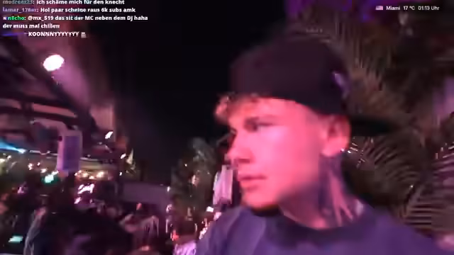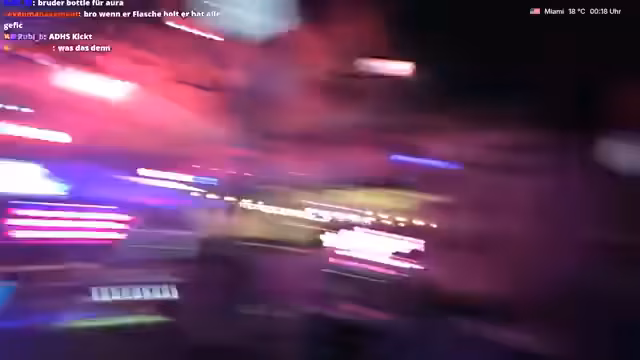 02:48:04Der Streamer erreicht schließlich den Club 'Vault' in Miami und teilt die positive Stimmung mit dem Chat. Er begrüßt die Zuschauer auf Englisch und Deutsch und betont die gute Energie und den Spaß, den er hat. Das Stream-Setting ist nun komplett: frisches Outfit, geladene Geräte und die Musik spielen im Club. Der Streamer kündigt an, die gute Stimmung und das 'Vibe Catching' fortzuführen und bittet das Publikum, mitzumachen.