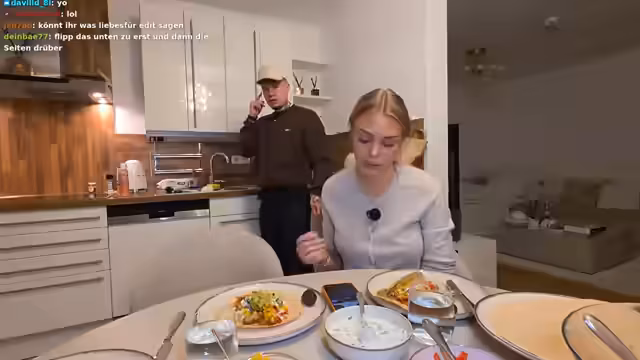 00:47:29Zu Beginn des Streams unterhalten sich die Anwesenden über persönliche Themen und ihren Tagesablauf. Es wird über den Kauf von Getränken gesprochen, wobei jemand Pepsi für den Weg möchte. Ebenso kommen persönliche Bemerkungen über das Aussehen und die Aura von Amalia zur Sprache. Die Themen reichen von der Weltherrschaft über Kommentare im Chat bis hin zur Erwähnung eines Freundes namens Zitrone. Es werden Pläne für gemeinsame Aktivitäten wie ein Essen im Stream und ein Telefonat am Abend angekündigt, und der Hinweis auf einen bevorstehenden Song-Release wird gegeben.