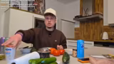 01:02:39Nach dem Kochbeginn zeigt der Streamer den Zuschauern sämtliche eingekauften Lebensmittel für das Iftar-Essen. Gemeinsam mit Amalia werden die einzelnen Zutaten wie Honigmelone, Gurken, Tomaten, Zucchini, Zitrone und Tortilla-Chips vorgestellt und ihre Verwendung erklärt. Die Vorbereitung für den Chobansalat und die Guacamole beginnt, indem Petersilie und Tomaten fein geschnitten werden. Während des Kochprozesses probieren die Streamer verschiedene Monte Energy-Getränke und bewerten deren Geschmack positiv.