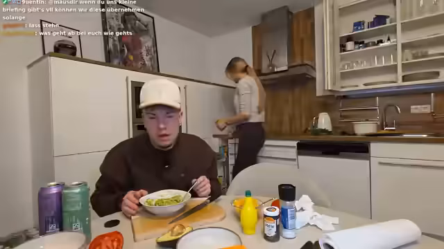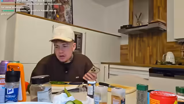 01:31:22Es wird betont, dass rohes Fleisch separat von den anderen Zutaten geschnitten werden muss, um hygienische Standards zu wahren. Während die Streamer Schneidebretter und Schüsseln vorbereiten, unterhalten sie sich über vegetarische Ernährung und die Notwendigkeit, Haare vom Essen fernzuhalten. Der Fokus liegt auf der effizienten Organisation der Küchenarbeiten. Es wird darauf hingewiesen, dass Julia an ihrer Facharbeit arbeitet, aber später zum Essen hinzustoßen soll.