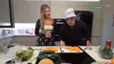 00:40:29Zu Beginn des Kochsegments bereitet Sophie die Zwiebeln für das Seafood-Boil vor. Während des Schneidens kommt es zu lockeren, teils humorvollen und abschweifenden Dialogen, in denen Sophie als "Sexmax-Frau" und "tollste Frau Deutschlands" bezeichnet wird. Der Fokus liegt auf der kulinarischen Vorarbeit, und die beiden interagieren durch gegenseitiges Lob über ihre Schnellarbeit und die improvisierten Ideen des Gerichts.