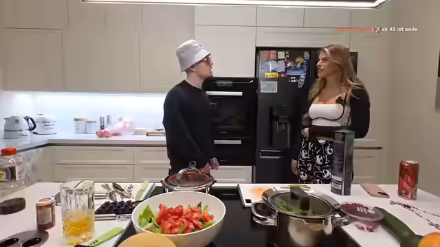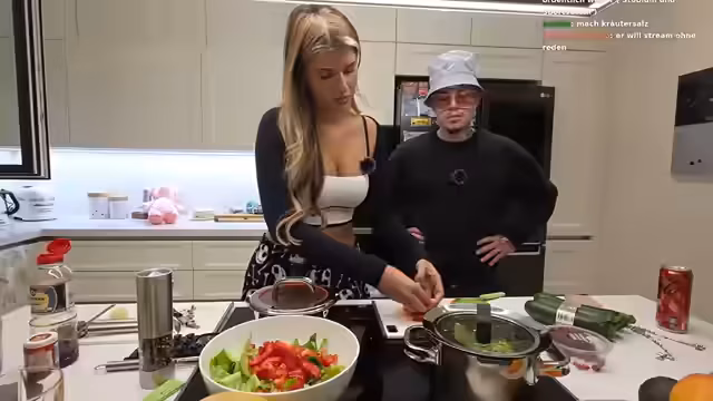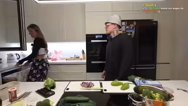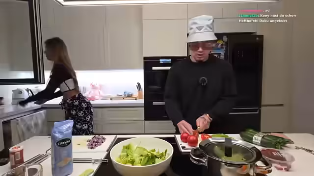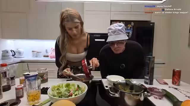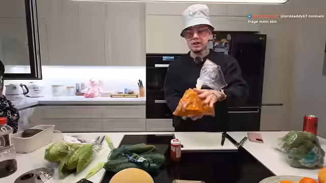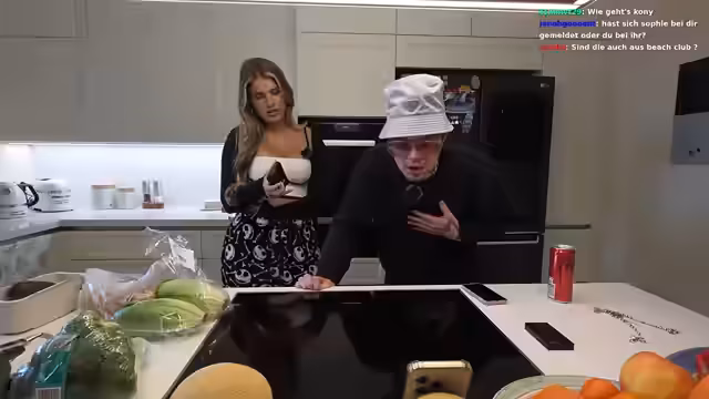 00:00:28Der Stream beginnt mit der Vorstellung von Sophie als Testerin für das Essen. Es wird erwähnt, dass bereits ein Kollaborations-Stream mit Amalia stattgefunden hat und die Möglichkeit eines weiteren Kollabo-Streams mit Sophie besprochen wird, da sie ebenfalls einen Twitch-Account besitzt. Der Streamer stellt kurz die aktuelle Situation ein, um nicht mehr über Amalias Account live zu sein, und begrüßt die Zuschauer. Er fragt nach ihrer Meinung zum Setup und seiner neuen Brille von Christian Dior. Sophie wird als „geniale Frau“ vorgestellt, und der Chat wird aufgefordert, Ws für sie zu spammen. Es wird angekündigt, dass etwas Leckeres gekocht wird, dessen genaue Art noch unklar ist, da Sophie die Zutaten eingekauft hat. Ein kleiner Vorgeschmack deutet auf Süßkartoffeln, Reis und weiteres Gemüse hin. Der Streamer muss kurz Reis bestellen und fragt die Zuschauer nach Empfehlungen für Lieferdienste wie Uber Eats oder Volt. Georgiana, eine Freundin von Sophie, ist ebenfalls hinter der Kamera anwesend und wird eventuell am Ende das Essen probieren.