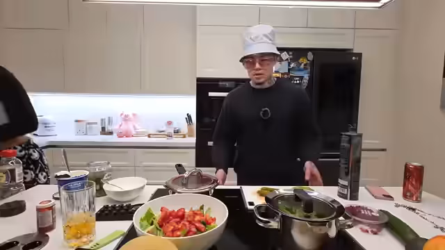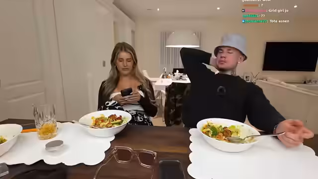 01:25:05Die Zuschauer äußern den Wunsch nach mehr Streams mit Sophie, was positiv aufgenommen wird. Die Zubereitung des Essens ist fast abgeschlossen, und es wird über das Anrichten der Speisen gesprochen, insbesondere wie die Avocado und das Dressing verwendet werden sollen. Sophie wird für ihre Kochkünste gelobt. Es wird beschlossen, das Essen anzurichten, und die Kamerafrau Giorgia wird gebeten, den Vorgang filmisch festzuhalten. Die Streamer beginnen mit dem Anrichten ihrer Teller, wobei der Reis besonders hervorgehoben wird. Währenddessen erzählt der Streamer von einer verwirrenden Begegnung mit einem Obdachlosen, mit dem er zuvor gestreamt hatte und der dachte, er würde ihm eine Wohnung kaufen. Er berichtet von einer früheren Spendenaktion für den Obdachlosen, dessen gespendetes Geld jedoch für Drogen ausgegeben wurde, was zur Aufgabe der Hoffnung führte. Es entwickelt sich ein kleiner Wettbewerb beim Anrichten der Teller, bei dem jeder seine eigene Herangehensweise zeigt und individuelle Tricks angewendet werden, um das Essen optisch ansprechend zu gestalten. Die aromatische Qualität des Reises wird betont, und es werden weitere Zutaten wie Süßkartoffeln und Granatapfelkerne hinzugefügt. Es wird auch über die Rapperin Georgiana gesprochen, die einen Diss gegen Caribou gemacht hat.