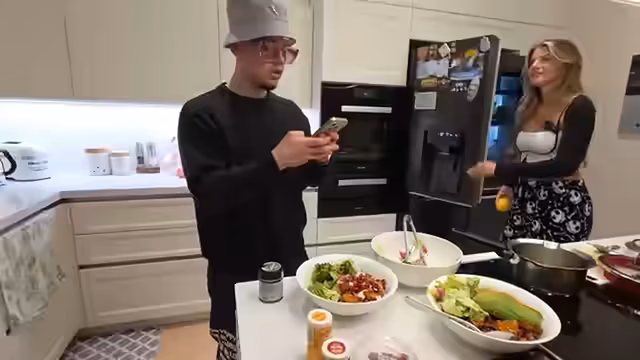 01:25:05Der Streamer und Sophie kochen gemeinsam ein Gericht, wobei der Prozess und das Ergebnis im Fokus stehen. Es entwickelt sich ein freundschaftlicher, aber auch wettbewerblicher Dialog. Sophie wird als 'Frau' angesprochen und ihre Kochkünste gelobt. Gegen Ende kündigt der Streamer einen 'Anricht-Battle' an, um zu bestimmen, wessen Teller optisch ansprechender ist. Das gemeinsame Kochen wird als sehr erfolgreich und gelungen beschrieben.