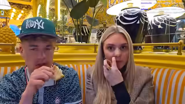 01:27:50Während des Streams ruft die Schwester Julia an, um Döner zu bestellen, da sie und Janeth Hunger haben. Es wird besprochen, welche Art von Döner gewünscht wird (Hähnchen ohne Zwiebeln, Kalb mit Gurke, Tomaten, Zaziki). Die Döner werden von einem als 'bester Dönerladen' bezeichneten Geschäft namens 'Kulti' geholt. Kurz darauf wird über die bevorstehende Reise nach Thailand gesprochen, die drei Wochen dauern wird. Es wird erwähnt, dass der Streamer in Koh Phangan, Koh Samui und Phuket sein wird, aber nicht in Bangkok. Die Reisepläne beinhalten tägliches Streamen, das Drehen eines Musikvideos zu einem neuen Song namens 'Fünf-Sterne-Hotel' (oder 'Latinas') und das Aufnehmen von ein bis zwei YouTube-Videos, darunter 'Ein Tag mit Kony und Mogli in Thailand' und 'Ein Tag als Ladyboy in Thailand'. Die Nase der Streamerin wird noch zwei Wochen brauchen, um zu heilen.