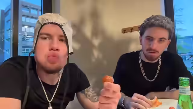03:09:55Während die Blondierung einzieht, kündigt der Sprecher an, eine Snapchat-Story hochzuladen. Beide streamer beschließen, in das Restaurant Vapiano zu gehen, um zu essen und das Handy aufzuladen, da der Akku fast leer ist. Unterwegs werden sie von Passanten erkannt. In Vapiano suchen sie nach einer Steckdose, um den Stream fortsetzen zu können, und diskutieren über Städte und Essensvorlieben.