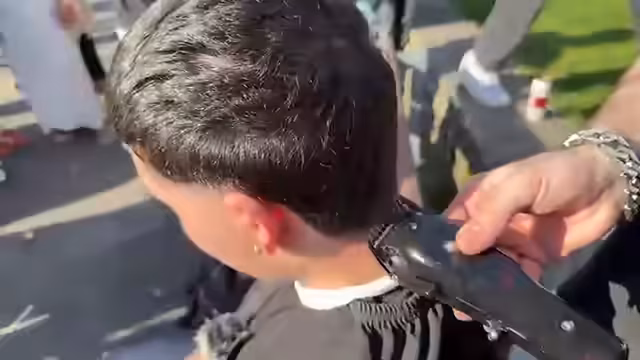 00:51:11Der Schnitt beginnt mit dem Bart Emirmonos, wobei die Hitze als belastend empfunden wird. Emirmono äußert seine Zweifel, ob er die gewünschte Frisur gut hinbekommt. Während des Vorgangs tauchen erste kleine Probleme auf, wie versehentliches Berühren der Haut und die Zitterneigung des Kopfes. Im Hintergrund laufen türkische Musik und ein Freund namens Chad hilft beim Filmen des Vorgangs.