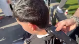 00:56:30Der Fokus liegt auf der Präzision des Schnitts. Die Teilnehmer gehen systematisch vor, indem sie zunächst die Seiten und dann den Hinterkopf bearbeiten. Der Chat gibt Tipps und schätzt den Verlauf des Haarschnitts positiv. Währenddessen wird der Stream von zahlreichen Umstehenden beobachtet, was eine Atmosphäre wie in einem Zoo erzeugt. Es werden Gespräche über persönliche Themen wie Namen, Herkunft und Freundschaften geführt.