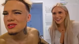 00:33:10Der letzte große Schritt ist das Styling der Lippen. Nach dem Auftrag von Lip Liner und Lippstift wird ein Lipgloss für den finalen, „juicy“ Look aufgetragen. Das gesamte Ergebnis bewerten Amalia und Kony als extrem erfolgreich und kreativ. Kony äußert seine Verwirrung und Begeisterung über sein verändertes Aussehen.