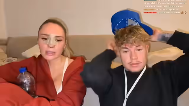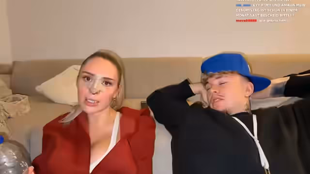 00:00:58Der Stream beginnt mit technischen Anpassungen an der Kamera, um die Bildqualität zu verbessern, wobei der Chat um Feedback gebeten wird. Amalia und der Streamer teilen mit, dass sie live sind und machen gleichzeitig Instagram-Stories, um ihre Zuschauer auf Twitch aufmerksam zu machen. Es wird erwähnt, dass beide momentan etwas deprimiert sind, und der Streamer äußert den Wunsch, ins Studio zu gehen, um einen neuen Song aufzunehmen. Amalia erwähnt ihre kürzliche Nasenoperation, die ihre sechste Schönheits-OP und die zweite an ihrer Nase ist. Sie äußert die Hoffnung, dass dies ihre letzte Operation sein wird, da der erste Arzt in Istanbul keine zufriedenstellende Arbeit geleistet hatte. Sie zeigt Fotos ihres Knorpels, die sie jedoch nicht auf Twitch zeigen darf, da sie blutig sind und die aufgeschnittene Rippe zeigen, von der Knorpel entnommen wurde.