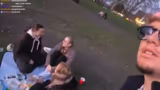 03:07:24Der Streamer interagiert mit einer Gruppe, die Spikeball, ein Ballspiel, spielt. Er versucht sich selbst am Spiel und filmte die Aktionen für das Publikum. Anschließend setzt er seine Spaziergang fort, trifft auf weitere junge Leute und macht Smalltalk. Die Dunkelheit bricht ein, was die Sichtbarkeit erschwert, und der Streamer beschließt, wegen des niedrigen Handyakkus und Hunger nach Essen zu suchen.