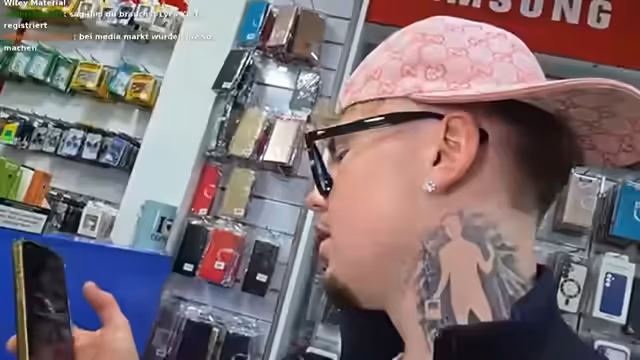 03:32:56Aufgrund eines vergessenen USB-C-Kabels muss der Streamer einen unplanmäßigen Einkauf beim Mediamarkt tätigen. Bei diesem Gelegenheitskauf wird auch eine pink Handyhülle erwogen, die aber erst nach Abstimmung mit dem Chat gekauft wird. Die technische Vorbereitung für den Stream wird durch das helle Kaufhauslicht erschwert, was das Tragen einer Sonnenbrille als notwendig erscheinen lässt. Trotzdem ist der Streamer zuversichtlich, da die Ton- und Lichtqualität für ihn zufriedenstellend sind.