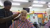 00:31:01Der Streamer fährt mit einem Grab (einer lokalen Transportapp) zum Friseur. Er beschreibt die Gegend und die Kosten des Transports. Er erreicht den Barbershop und lässt sich eine 'Skin Fade'-Friseur schneiden lassen, wobei er speziell darum bittet, die Seiten auf Null zu schneiden und oben etwas länger zu lassen.