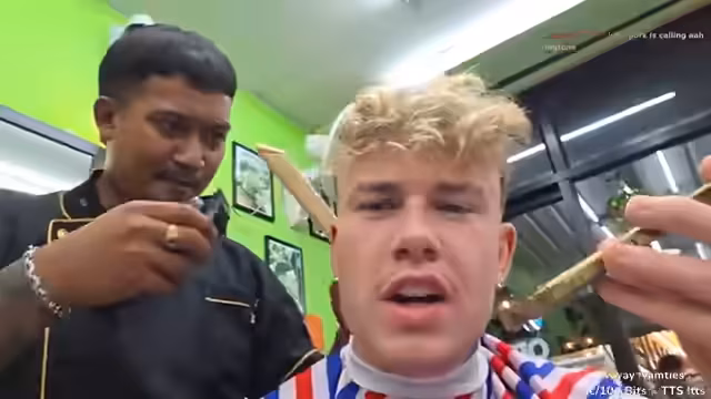 00:43:38Während des Friseurbesuchs spricht der Streamer mit dem Barbier über kulturelle Themen und erkundigt sich nach Muay Thai Trainingseinheiten. Er zeigt Interesse an einem YouTube-Video über Muay Thai Training in Thailand und spricht über die vielfältige Nationalität der Touristen in der Region, darunter Australier, Deutsche, Franzosen und Briten.