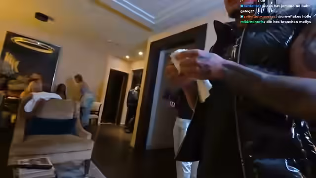 03:08:14Die Ankunft von Limo West, ein selbsternannter Playboy und Riesenacht, sorgt für Aufregung im Stream. Der Streamer interagiert intensiv mit dem Chat und den anwesenden Damen, insbesondere Leila und Dunja. Die Szene spielt sich in einem luxuriösen Hotelzimmer ab, und es werden verschiedene Ideen für die anstehenden Videodrehs und Partyszenen mit den Frauen besprochen. Eine besondere Idee ist die Aufforderung an die Frauen, in den Chat 'W's zu spenden, um Leila zu ehren.