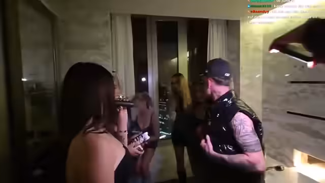04:21:07Nach intensiven Dreharbeiten und Gesprächen mit den Frauen kündigt der Streamer den Beginn einer After-House-Party an. Es ist geplant, dass alle Teilnehmer gemeinsam ausziehen und die Party in einer exklusiven Location fortsetzen. Der Streamer betont, dass dies der nächste Höhepunkt des Abends ist und bittet die Frauen, sich darauf einzustimmen, was für weitere Aufregung und Interaktion im Chat sorgt.