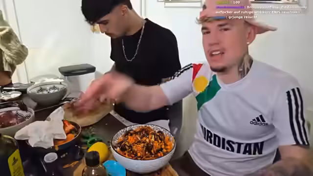 00:00:00Der Stream beginnt mit der Ankündigung des Kochstreams mit der kurdischen Mama und Tochter. Die Streamerin stellt sich und ihre Familie vor, die im Hintergrund präsent sind. Sie erwähnen ihre Abstammung und zeigen sich stolz auf ihre Familie. Der Fokus liegt auf der Vorstellung der beiden Frauen, die als ein ungeschlagenes Duo beschrieben werden. Der Streamer begrüßt das Publikum und gibt einen Einblick in den heutigen Plan, der das Färben von Haaren und Augenbrauen sowie das Kochen umfasst. Ein zentrales Thema ist das positive Verhältnis innerhalb der Familie und die Vorstellung des neuen 'Adoptivsohns'.