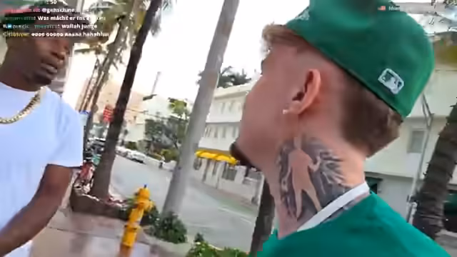 01:42:49Nachdem der Streamer den Friseursalon verlassen hat, beginnt er, mit Frauen auf Ocean Drive zu interagieren, was als unbesiegbar und erfolgreich beschrieben wird. Er spricht mit mehreren Frauen, darunter eine aus Venezuela, und versucht, Kontakte zu knüpfen. Währenddessen wird ein Uber bestellt, um sich fortzubewegen. Der Streamer erwähnt, dass er seine Zuschauerzahlen durch Interaktionen erhöhen will und versucht, die Leute mit seinem Team zu beeindrucken. Der Stream zeigt nun eine mehr mobile und dynamische Stimmung im Vergleich zum vorherigen Warten im Salon.