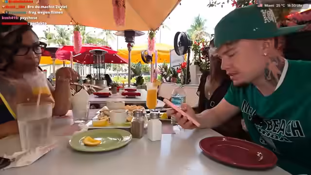 04:00:08Nach dem Essen will der Streamer weiterziehen und seine Zeit in Miami optimal nutzen. Er versucht, eine Person namens Kennedy zu kontaktieren, die sich aber nicht meldet. Stattdessen schreibt ihm eine Juliana. Er spricht Versprechen aus, seine neuen Bekannten wiederzusehen und potenzielle Treffen oder Kollaborationen in Betracht zu ziehen. Er lässt sich nicht vom Chat irritieren und betont, dass sein Stream für Action und interessante Erlebnisse sorgt, und nicht nur aus ruhigen Aktivitäten besteht.