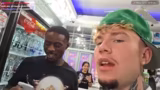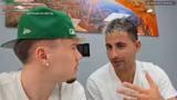 03:16:38Im nächsten Geschäft interagiert der Streamer mit einem Verkäufer, der ihm vermeintliche Louis-Vuitton-Produkte anbietet. Der Streamer ist skeptisch und erkennt wahrscheinlich, dass es sich um Fälschungen handelt, was zu einem komischen Dialog führt. Er probiert verschiedene Kleidungsstücke an und zeigt sich begeistert von dem Swag und der Bequemlichkeit der Outfits.
