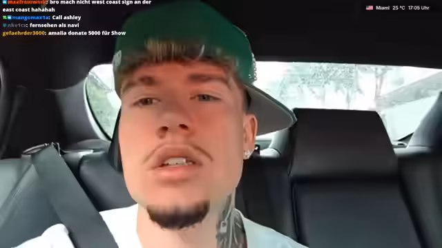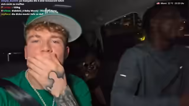 07:46:54Der Streamer befindet sich in Miami und bestätigt den Zuschauern, dass er aufgenommen wird, auch wenn nicht live gestreamt wird. Er berichtet, dass er im Auto ist und zwei Personen gerade einen guten Deal gemacht haben. Anschließend geht er zurück und macht einen ersten Freund rein, um weiter aufzubauen. Der Fokus liegt auf dem Aufenthalt in Miami und der aktuellen Situation.