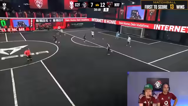 00:13:20Das Spiel entwickelt sich weiter. Der Streamer bemerkt die nervösen und 'allürenhaften' Gegner. Sein Team hat deutliche Chancen (z.B. von Mo und Ahmed), nutzt sie aber nicht optimal. Es gibt Diskussionen über Schiedsrichterentscheidungen, insbesondere ein umstrittenes Handspiel und ein nicht gegebenes Foul. Das Team hält das Spiel unter Kontrolle, jedoch mit gelegentlichen Gefahren durch die gegnerischen Angriffe.