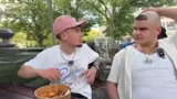 01:05:17Die Gruppe begegnet einem sehr großen Mann auf der Straße. Die Streamer sind beeindruckt von seiner Größe und scherzen über ein mögliches Armdrücken. Der Streamer berichtet, dass er zufällig in Berlin angekommen ist, obwohl er eigentlich nur für kurze Zeit geplant war. Er empfindet die Situation als maximalen Film und das beste Leben, da er unvorbereitet in eine aufregende Situation gerät.