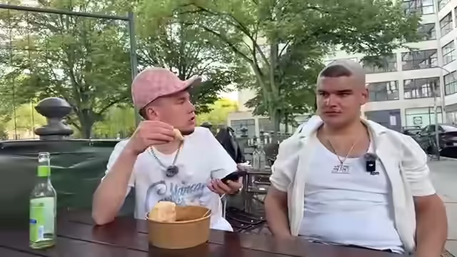 02:17:55Die Gruppe befindet sich in Kreuzberg und teilt ihre Philosophie des 'Kreuzberger Mindsets', die sich durch das Herz und nicht durch Herkunft oder Hautfarbe definiert. Sie fühlen sich als 'Allmänner' und betonen ihre Verbundenheit mit dem Kiez. Es wird die alltägliche Realität in Berlin thematisiert, wie z.B. das Risiko von Fahrrad-Diebstählen und die Notwendigkeit, auf Diamanten an Ketten aufzupassen, während das als authentisches und freies Leben gefeiert wird.