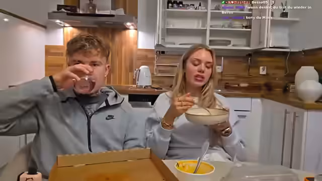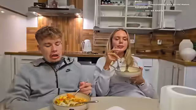 01:36:10Der Stream beginnt mit persönlichen Alltagsthemen, wie das Essen und die Zuneigung zur Schwester Amalie. Dabei werden Bestellungen von Suppe und Pizza erwähnt, wobei die Zutaten und der Genuss ausführlich besprochen werden. Es entstehen lockere, persönliche Dialoge über die Zubereitung von Essen, wobei das Kochen selbst als gemeinsame Aktivität dargestellt wird, die den Zusammenhalt im Stream verstärkt.