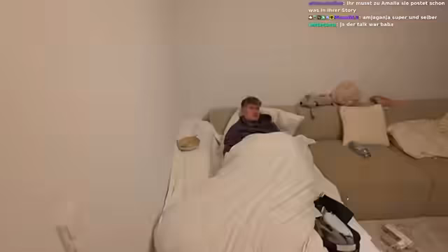 01:44:59Während Conny auf der Toilette ist, nutzt Amalia die Zeit für ihre Schönheitsroutine und redet mit Chat über Make-up. Conny äußert sich zu verschiedenen Marken und Produkten und zeigt sich selbstbewusst, wenn es um sein Aussehen geht. Gleichzeitig wird die Musik im Hintergrund als unpassend und langweilig kritisiert. Die Szene zeigt den privaten und alltäglichen Teil des Streams, der von Gesprächen über Kosmetik und persönliche Vorlieben geprägt ist.