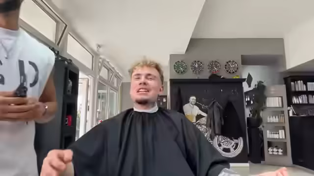 00:05:30Die beiden besuchen ein Eiscafé in der Nähe, um sich zu erfrischen. Der Streamer kauft für sich, Nino und das gesamte Salonpersonal Eis. Das Eis wird als handgemacht und original italienisch beworben. Anschließend kehren sie zum Friseursalon 'Haarstudio außergewöhnlich' zurück. Der Streamer stellt den Friseur Ben vor und lobt dessen Arbeit und Outfit. Nino setzt sich in den Friseurstuhl, um sich die Haare schneiden zu lassen, während der Streamer das Geschehen kommentiert.
