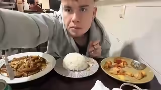 01:41:01Der Streamer zeigt dem Publikum, was er isst, und veranstaltet eine Art Mukbang. Er hat sich große Gerichte bestellt: Patatas Bravas, Reis und Zucchini. Er probiert das Essen vor der Kamera und beschreibt den Geschmack enthusiastisch. Dabei kommen verschiedene Themen zur Sprache, wie seine Liebe zum Essen und der Wunsch, solche Formate mehr zu machen, um den Zuschauern das Essenserlebnis zu vermitteln.