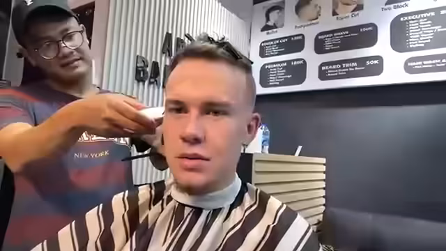 01:27:01Der Streamer äußert seine Wertschätzung für ApoRed als polarisierenden YouTuber, mit dem er sich identifizieren kann. Im Barbershop angekommen, wird der Preis für einen Haarschnitt erfragt (250.000). Es wird ausgelost, wer zuerst mit dem Haareschneiden beginnt. Der Streamer zeigt dem Friseur ein Bild von einem Burst Fade und erklärt, dass er nur einen Übergang möchte. Es wird überlegt, ob ein Design in die Frisur geschnitten werden soll. Der Streamer trägt ein Hemd von Ratte, das er eigentlich nicht so gut findet. Es wird überlegt, ob ein Design in die Frisur geschnitten werden soll. Der Streamer trägt ein Hemd von Ratte, das er eigentlich nicht so gut findet. Der Streamer trägt ein Hemd von Ratte, das er eigentlich nicht so gut findet. Der Streamer trägt ein Hemd von Ratte, das er eigentlich nicht so gut findet.