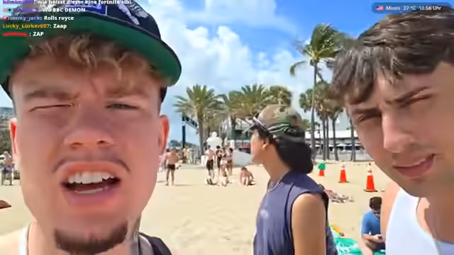 03:38:51Nach einer Rückkehr zum Strand trifft der Streamer auf neue Leute wie Chloe und Diane, die er für ein kurzes Interview anspricht. Trotz der Live-Präsenz und der Zuschauerzahlen gestaltet sich die Konversation schwierig. Der Streamer macht sich Sorgen über die fehlende Professionalität und fehlende Unterstützung seines Kameramannes. Er betont, dass es ihm schwerfällt, angesichts der Umstände alleine zu agieren und zeigt sich frustriert über die allgemeine Organisation.