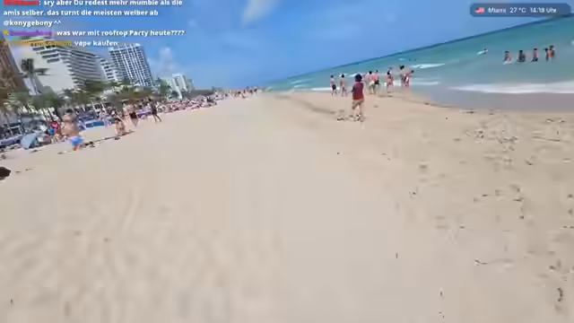 04:38:20Der Streamer setzt seine Gespräche mit Partygängern und Strandbesuchern fort. Er trifft auf Personen aus verschiedenen Regionen wie Orlando und Maryland und stellt sich als Streamer aus Deutschland vor. Die Interaktionen sind geprägt von Zuneigung zu seinen deutschen Followern, die er für ihre Unterstützung lobt.