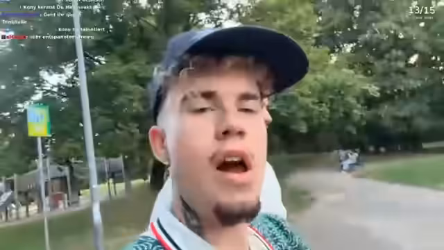 02:00:01Der Streamer äußert Zweifel, ob er weiterhin Musik machen wird, und denkt stattdessen daran, Grundschullehrer zu werden. Nach einem improvisierten Songvortrag mit dem Titel "Saruch" und dem Teaser eines neuen Musikvideos, das in Frankfurt gedreht wurde, gibt es einen abrupten Ortswechsel in Sossenheim. Dort kommt es zu einer Konfrontation mit einer älteren Frau, die das Filmen und Verweilen stört und die Polizei ruft. Der Streamer versucht, die Situation friedlich und "mit Liebe" zu klären, was zu einem intensiven Dialog und einer Mischung aus Verständnis und Frustration über die Situation führt.