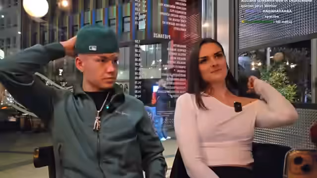 03:19:22In der Losteria angekommen, suchen die beiden einen geeigneten Platz und entscheiden sich für eine ruhigere Ecke. Es werden kurz die Mikrofone eingerichtet, während Vika die Toilette besucht. Der Streamer bittet den Chat um Meinungen zu Vika und geht dann selbst auf die Toilette. Vika beantwortet währenddessen Fragen aus dem Chat zu ihrer Person, ihrer Familie und ihren Sprachkenntnissen. Nach seiner Rückkehr bestellt der Streamer Pasta Arabiata für sich und Vika. Es wird überlegt, ob die Mikrofone aufgrund von Corona wieder benutzt werden sollen. Es folgt ein kurzer Smalltalk über Vapes, Zigaretten und die Gesundheitsschädlichkeit von beidem. Der Streamer fragt den Chat nach dem Ton und erklärt, dass die Mikrofone das Schreien überflüssig machen.