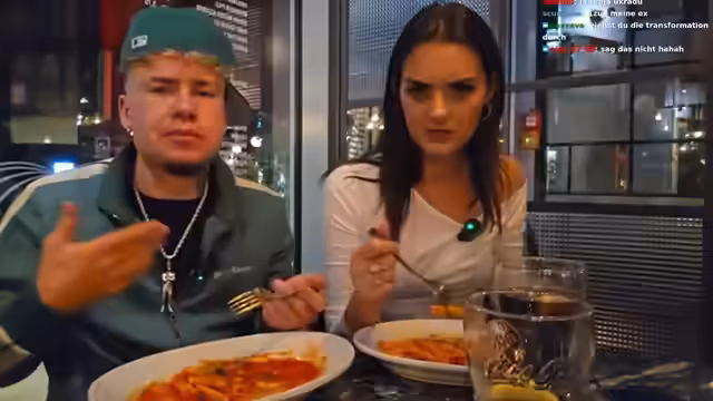 03:32:58Es wird über den Charakter gesprochen, wobei betont wird, dass sie ruhig und vernünftig sei, was gut zusammenpasse. Sie selbst beschreibt sich als vielseitig und kann auch anders sein. Es wird überlegt, zukünftig Kochstreams zu machen und russische Gerichte zu kochen, wobei auf gesunde und einfache Rezepte geachtet werden soll. Es wird nach russischen Wörtern gefragt und ein kleiner Crashkurs gegeben. Der Streamer erwähnt, dass er vor kurzem seine Haare geschnitten hat. Es wird über Snap-Stories von Zoe diskutiert, die aber vom Streamer heruntergespielt werden. Die bestellte Cola kommt an, und es wird festgestellt, dass die Wartezeit etwas lang war. Die Pasta Arabiata wird serviert, und der Streamer wünscht einen guten Appetit. Es wird über den Käse in der Pasta diskutiert, da sie keinen Käse mag. Es wird versucht, das Essen optimal für die Kamera zu platzieren.