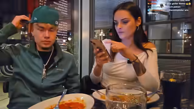 03:29:48Nach der Ankunft im Restaurant bestellen beide Penne Arrabiata. Während sie auf das Essen warten, vertiefen sich ihre persönlichen Gespräche. Sie tauschen sich über ihre Herkunft, Sprachen und Hobbys aus. Vika stellt Fragen zu ihren Tattoos und der Streamerin beantwortet diese offen. Auch Themen wie Einstellungen, Ängste und Beziehungen kommen zur Sprache. Ihr erster Eindruck voneinander ist positiv, sie beschreibt sich selbst als anfangs etwas schüchtern.