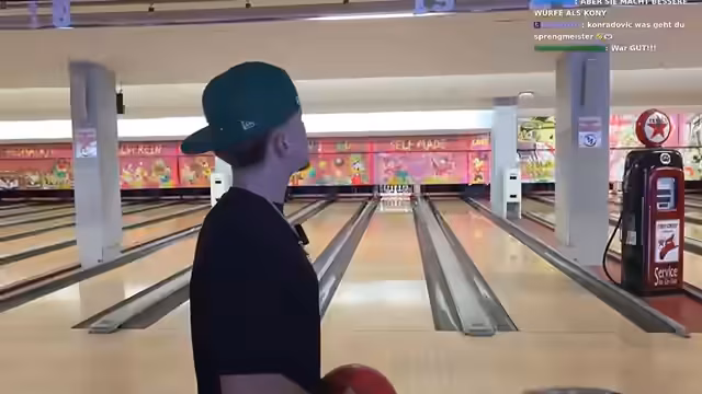 00:18:20Die Bowlingbahn wird erreicht und die Zuschauer werden über die bevorstehende Bowling-Session informiert. Es wird über Schuhgrößen und Körpergrößen gescherzt. Getränke werden bestellt und es wird überlegt, wer das Spiel wohl gewinnen wird. Der Streamer versucht sich an einem Boxautomaten, scheitert jedoch am benötigten Bargeld, welches er sich von VK Abla leiht. Nach einer kurzen Vorführung am Junior-Boxautomaten beginnt das eigentliche Bowling-Spiel. Der Streamer gibt ein kurzes Tutorial, das jedoch nicht von Erfolg gekrönt ist. Es werden verschiedene Wurftechniken ausprobiert, mal mit mehr, mal mit weniger Erfolg. Es wird über eine Bestrafung für den Verlierer nachgedacht, die jedoch nicht allzu ernst genommen wird. Der Streamer und VK Abla wechseln sich ab und kommentieren ihre Würfe gegenseitig.