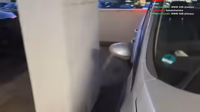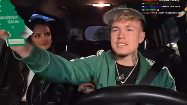 01:53:00Beim Verlassen des Parkhauses gibt es technische Probleme. Das Kennzeichen des Autos ist abgefallen, was den Streamer veranlasst, die Befestigung zu erklären. Gleichzeitig tauchen Probleme mit dem Mikrofon auf, das rauscht und die Gesprächsqualität beeinträchtigt. Trotz dieser Hürden wird der Weg zum Friseur fortgesetzt und die Atmosphäre bleibt entspannt, wobei die Streamerin immer wieder die Situation humoristisch kommentiert.