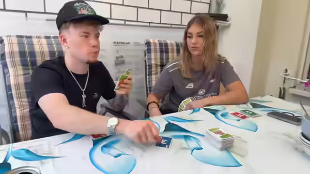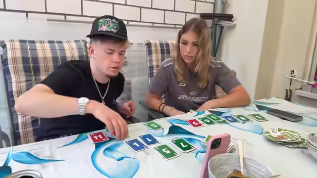 02:03:31Die genauen Spielmechaniken werden vertieft, wie das Bilden neuer Stapel ab der Karte Eins und die Möglichkeit, mehrere Karten aufeinander zu legen. Während des Spiels kommt es zu kleineren technischen Problemen und einem Vorwurf des Schummelns. Die Spannung steigt, als Katinka einen Gewinn in Aussicht stellt, aber letztlich doch verliert, woraufhin sie eine Bestrafung antreten muss.