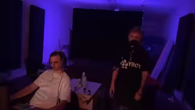00:24:52Die Session wird kurz unterbrochen, da der Streamer und George technische Anpassungen vornehmen. Sie wollen eine Kopfhörerlösung testen, um den Sound für den Stream zu optimieren und das Bild für die Zuschauer anzupassen. Nach erfolgreichem Test wird das Streamsetup als perfekt beschrieben, und die Produktion kann mit Autotune-Effekten und direkter Sichtbarkeit der beiden Künstler fortgesetzt werden. Der Streamer zeigt sich begeistert von der Optik und dem Klang.